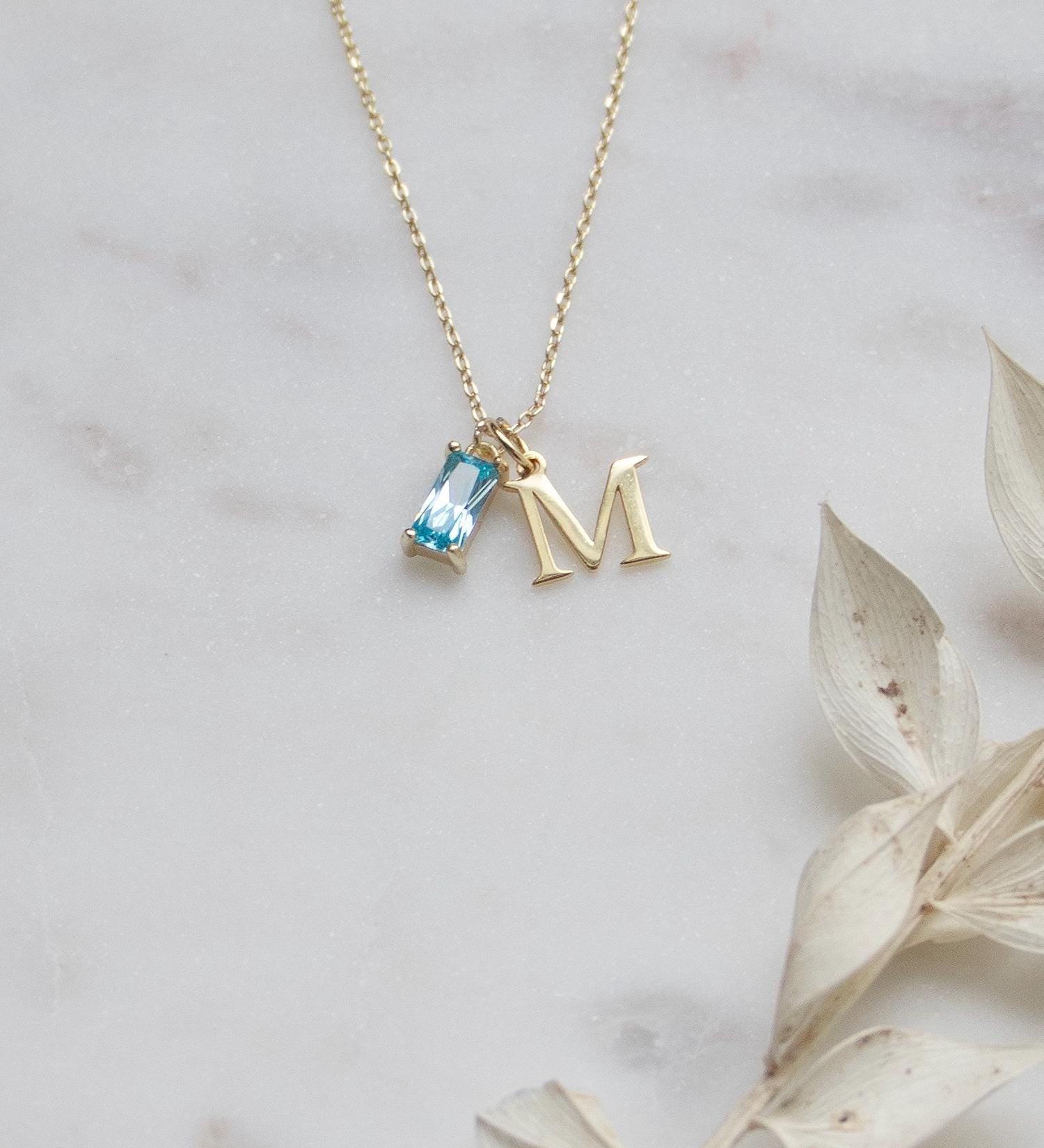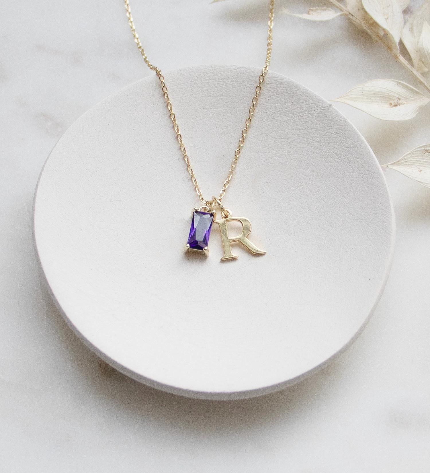 Birthstone Necklace – Dainty Gold Initial Gemstone Jewelry | Personalized Gift