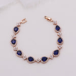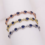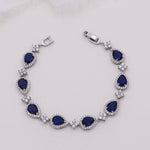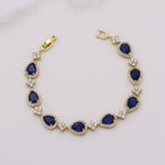 Add a touch of sparkle and this classically designed framed blue sapphire colored cubic zirconia teardrop wedding bracelet. Measuring 7" long, these are perfect for any special occasion. Choose from silver, gold or rose gold.