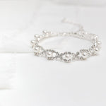 The Becca bracelet is the perfect compliment to your look. This beautifully crafted bracelet features sparkling round interweaved rhinestone crystals with accents of pearls. Bracelet is adjustable from 6 3/4"-9" and 3/8" wide and is perfect for the bride or any special occasion! Choose from silver, gold or rose gold.