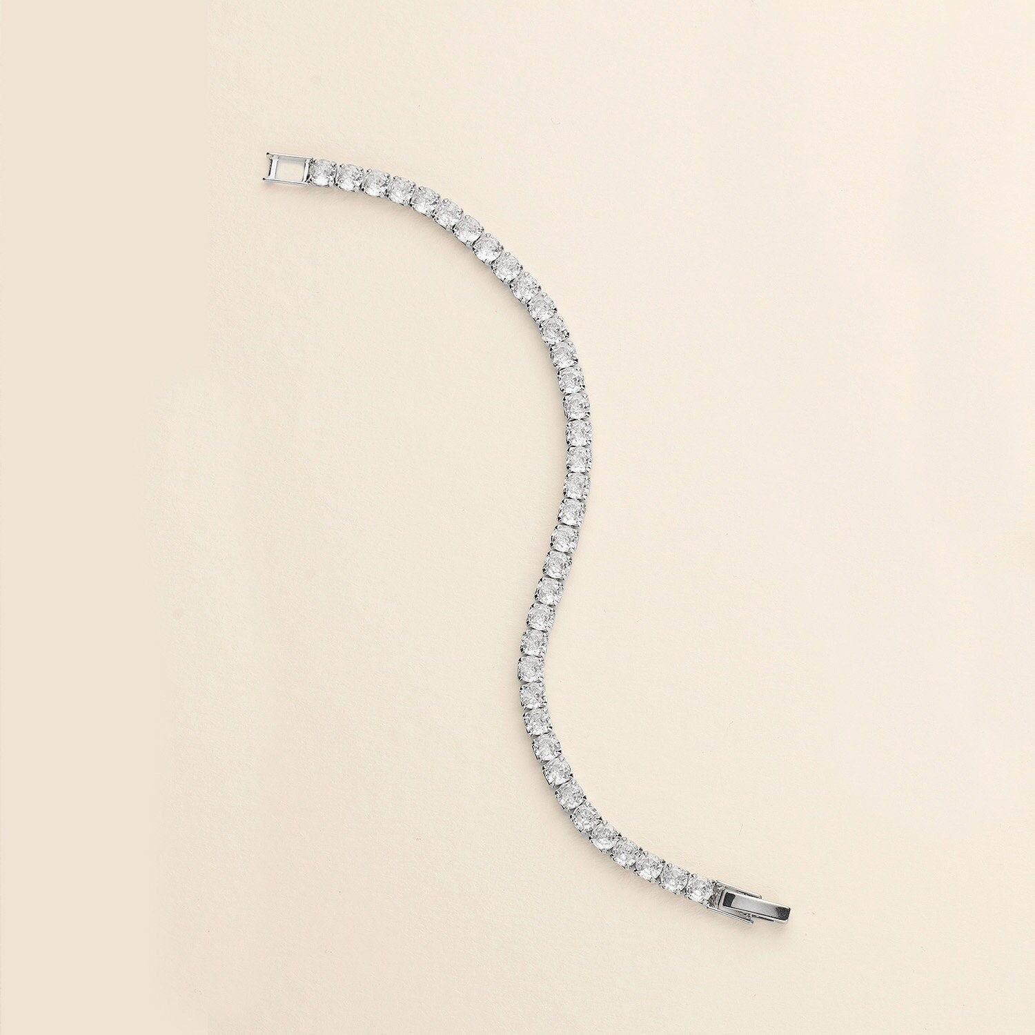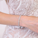 This classic and simple designed bracelet is made with AAA grade cubic zirconia round stones that is sure to match any attire! Bracelet is adjustable with a removable extender from 6 3/4"-7 1/2" long and is are perfect for the bride or any special occasion! Stones in bracelet measure 4mm. Choose from silver, gold or rose gold.