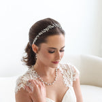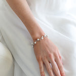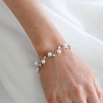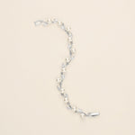 This classically designed bracelet boasts off white glass pearl accented with marquise cubic zirconia "leaves" in a floral like pattern.