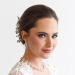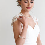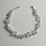Add floral elegance with this adjustable pearl wedding bracelet featuring a leafy floral pattern with accents petite white pearls.