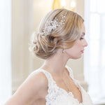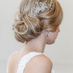 Add a touch of floral beauty with this unique bridal comb featuring high quality crystal rhinestones bursting with sparkle and accenting sprays. Plated in bright silver, this stunning comb measures 5" wide by 1 3/4" tall. This comb would be perfect as a side accent or back comb wedding hair accessory. Now available in silver or rose gold!