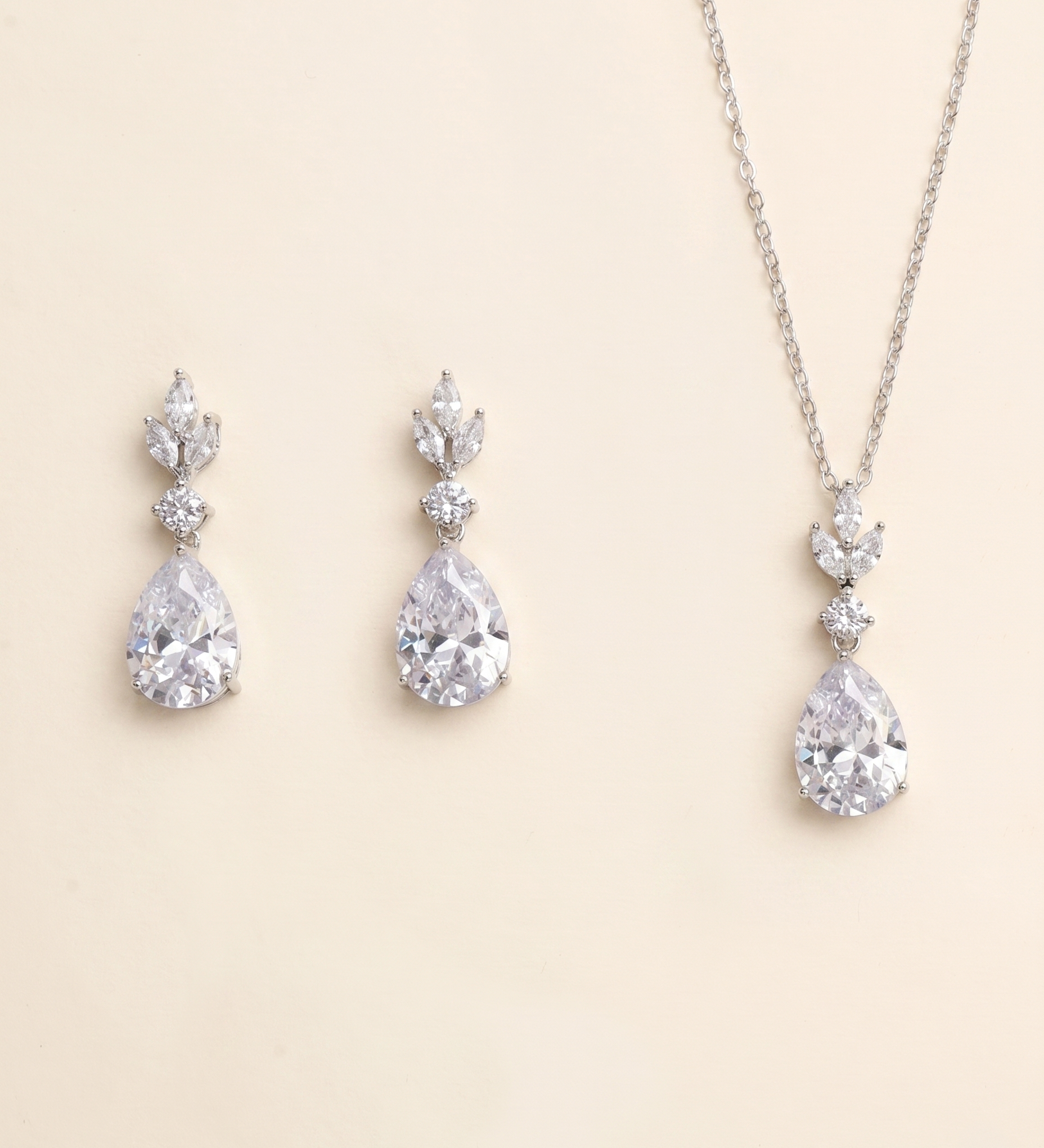 Isabella Bridal Jewelry Set – CZ Teardrop Wedding Necklace & Earrings