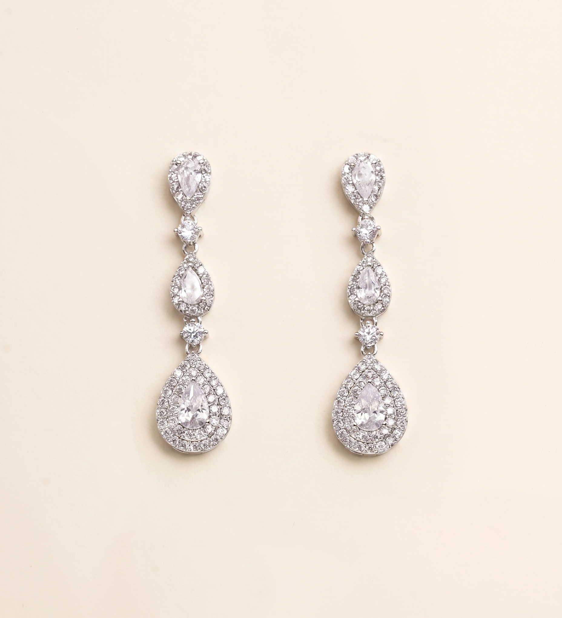 Adeline Oval & Teardrop Bridal Earrings – CZ Drop Wedding Earrings