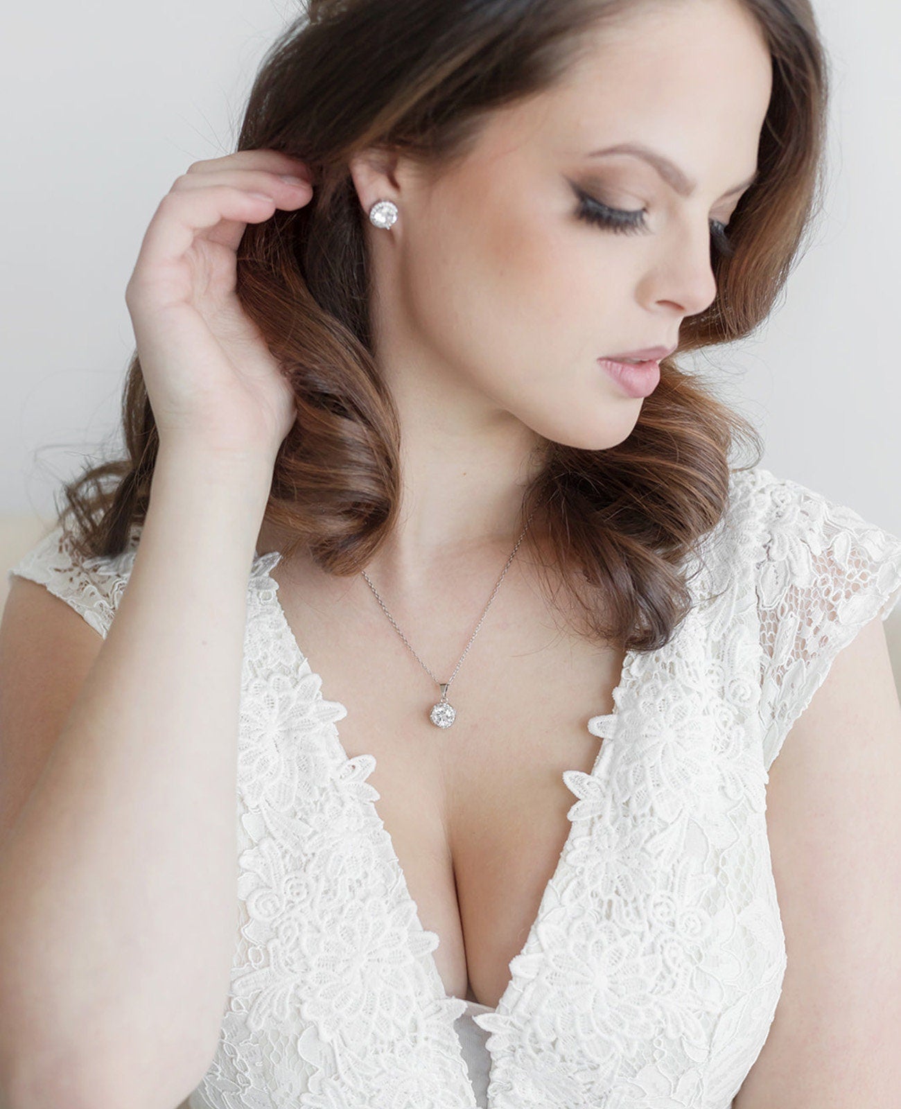 These earrings are classically designed with AAA grade cubic zirconia stones with a center round surrounded by tiny CZ pave stones. Measuring 3/8", these brilliant earrings are perfect for the bride, wedding, bridesmaids or even everyday wear! Choose from silver, gold or rose plating. Matching optional necklace measures 16"-18" long, bracelet measures 7".
