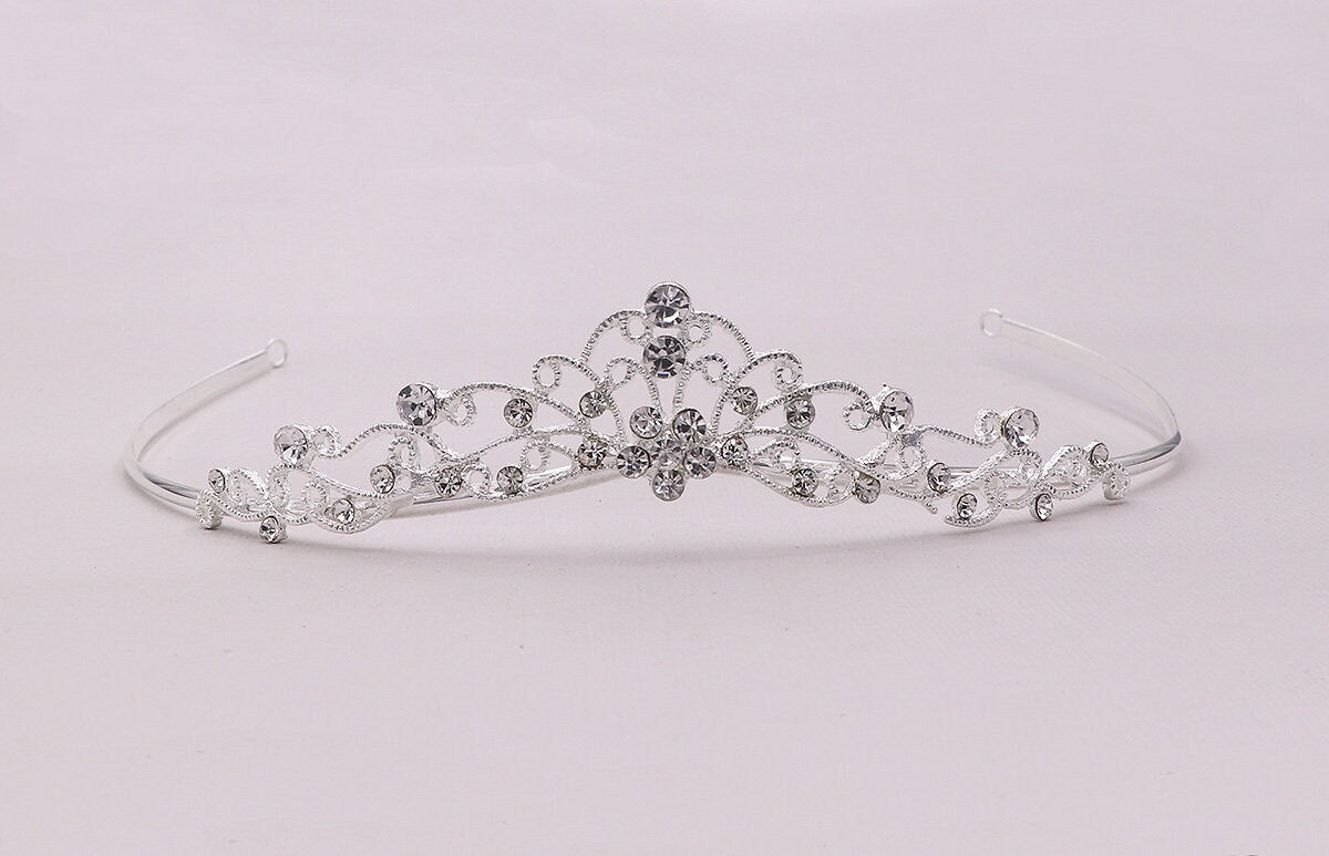 This brilliant flower girl tiara features sparkling rhinestones with a flower center perfect for the flower girl! This headpiece is perfect for the flower girl, first communion or birthday party! Measuring 1" high, this sparkling headpiece is sure to add sparkle to your special day!