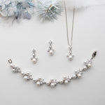 This exquisitely crafted bracelet, necklace and earrings set boasts lustrous freshwater pearl clusters accented with AAA grade cubic zirconia stones. Matching earrings measure 1" and necklace measures 16-18" (adjustable). Complete the look with the optional bracelet measuring 7" long and 3/8" wide. Now available in silver, gold or rose gold!