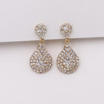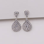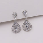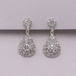 These wedding clip on earrings are designed with tiny, sparkling rhinestones in a teardrop pattern. Measuring 2" long, these brilliant earrings are perfect for a wedding, the bride, parties or any special occasion. Now available in silver, gold or rose gold!