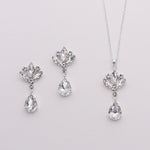 This brilliant crystal jewelry set will surely add sparkle on your special day! Boasting brilliant rhinestone crystals in rounds and marquise shapes with dangling teardrops. Necklace measures 16-18" long (adjustable), earrings measure 1 1/2". This set is perfect for the bride, bridesmaids, or any special occasion!