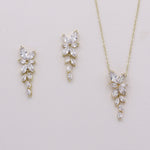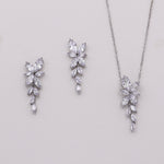 This brilliant jewelry set will surely add sparkle on your special day! Boasting cubic zirconia marquise stones dangling in a "cascade" of brilliance, this necklace measures 16" long and has an extender for additional length (up to 18"), earrings measure 1 1/2". This set is perfect for the bride, weddings, mother of the bride or any special occasion! Choose from silver, gold or rose gold. Matching bracelet (optional) is adjustable and measures 6 3/4-7 1/2" long.