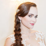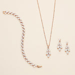 This dainty rose gold jewelry set will surely add sparkle to your girls on your special day! Boasting brilliant cubic zirconia in clusters of marquise shapes and teardrops. Earrings measure 1", necklace is adjustable from 16"-18" long. Optional matching bracelet is adjustable with a removable extender and measures 6 3/4"-7 1/2" long. This set is perfect for the bride, bridesmaids jewelry gift, prom or any special occasion! Now available in pierced or clip on earrings, perfect for the whole bridal party. Available in silver, gold and rose gold!