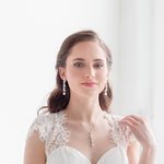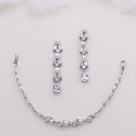 Enhance your bridal ensemble with the exquisite elegance of this pearl cubic zirconia bridal jewelry set. Crafted with meticulous attention to detail, this set exudes a timeless beauty that perfectly complements any wedding dress. The lustrous pearls delicately adorn the necklace, bracelet, and earrings, adding a touch of refined sophistication. The radiant cubic zirconia stones exude a brilliant sparkle, reminiscent of diamonds, creating a stunning contrast against the pearls. Perfect for brides seeking a touch of classic glamour, this bridal jewelry set is sure to make an unforgettable statement on your special day.