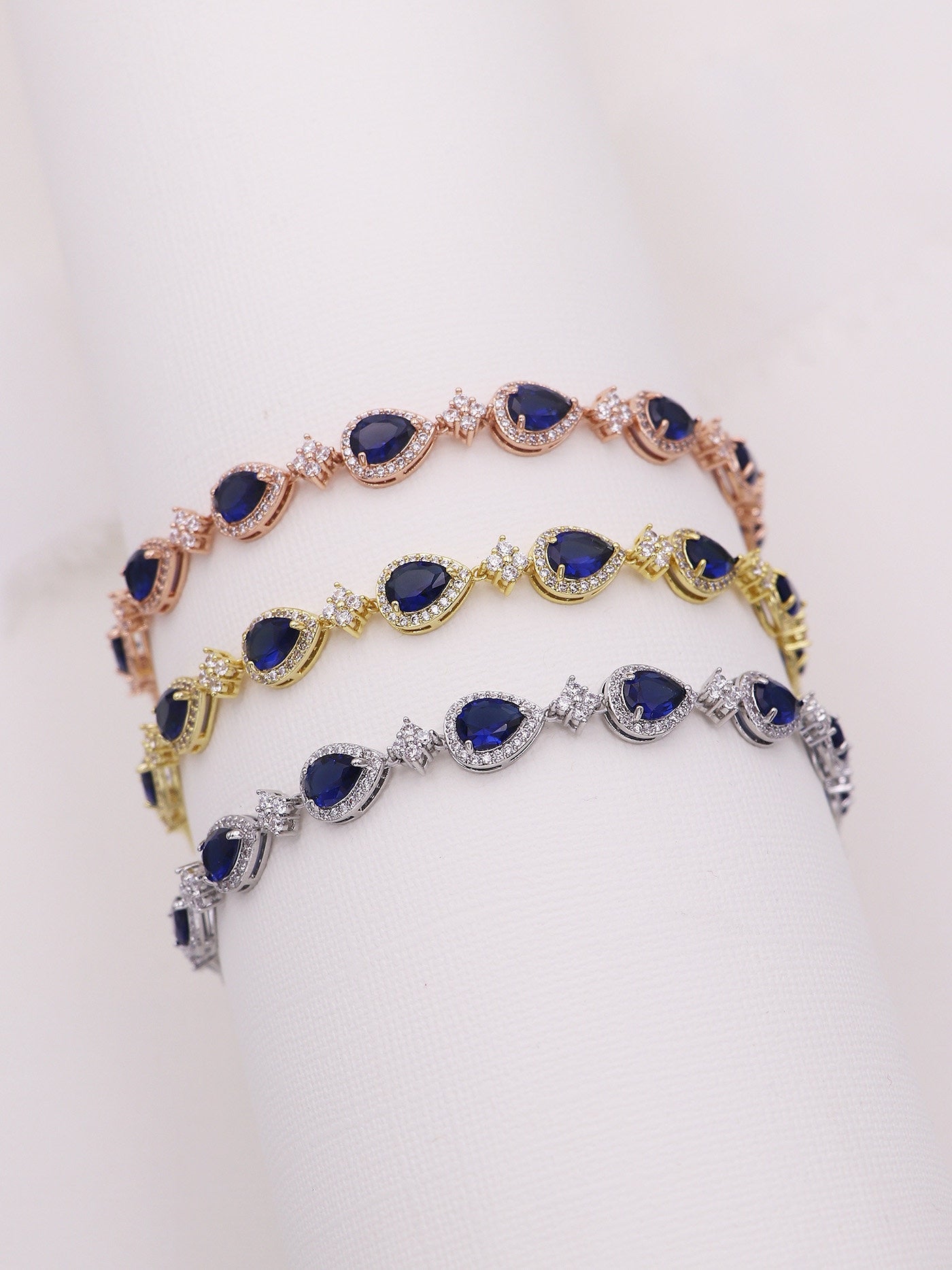 Add a touch of sparkle and these classically designed framed blue sapphire colored cubic zirconia teardrop wedding earrings, necklace and bracelet set that dangle with sparkle. Measuring 1 1/4" long, these are perfect for any special occasion. Necklace measures 16"-18" (adjustable). Optional bracelet measures 7" long. Choose from silver, gold or rose gold.
