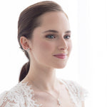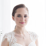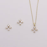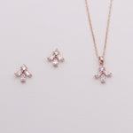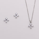 Add minimalist elegance with these exquisitely designed cubic zirconia teardrop wedding earrings and necklace set, featuring shapes of round and marquise in a "leafy" pattern. Perfect for the minimalist bride, bridesmaids, mother of the bride, MOH, prom or any occasion!