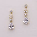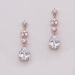 These brilliant earrings will surely add sparkle on your special day! Boasting brilliant cubic zirconia in clusters of marquise shapes and teardrops set in shiny silver. Earrings measure 1 3/4". Matching optional bracelet available measuring 7". Available in silver, gold or rose gold!