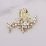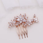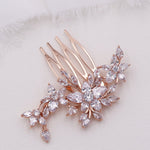 This elegantly designed hair comb features sparkling cubic zirconia stones in a floral pattern that is the perfect accessory for the bride or any special occasion event. This piece is perfect as a smaller, size comb. Measures a more petite size at 2 1/2" wide and 1 1/4" tall. Choose from gold or rose gold.