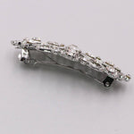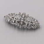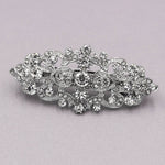 This exquisite vintage designed barrette features sparkling rhinestones set in brilliant rhodium silver that is the perfect accessory for the bride or any special occasion event. This piece is perfect as a side or back clip accessory. Measures a more petite size at 2 1/4" wide and 1" tall and has a clip on the back to securely place into your hair. Available in silver, gold or rose gold.