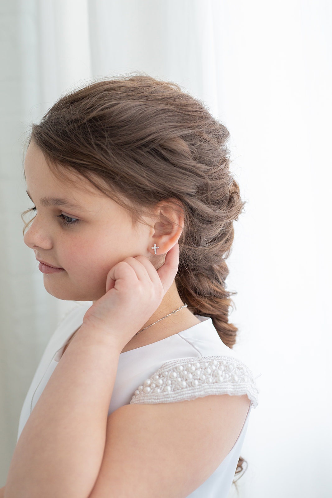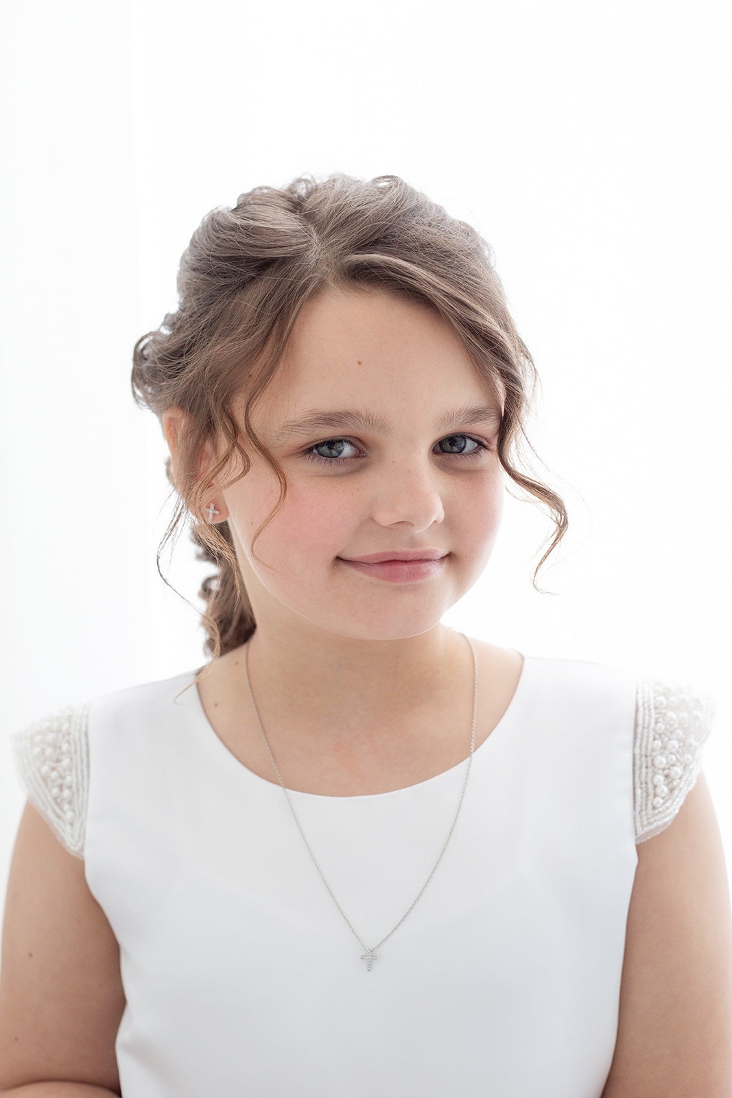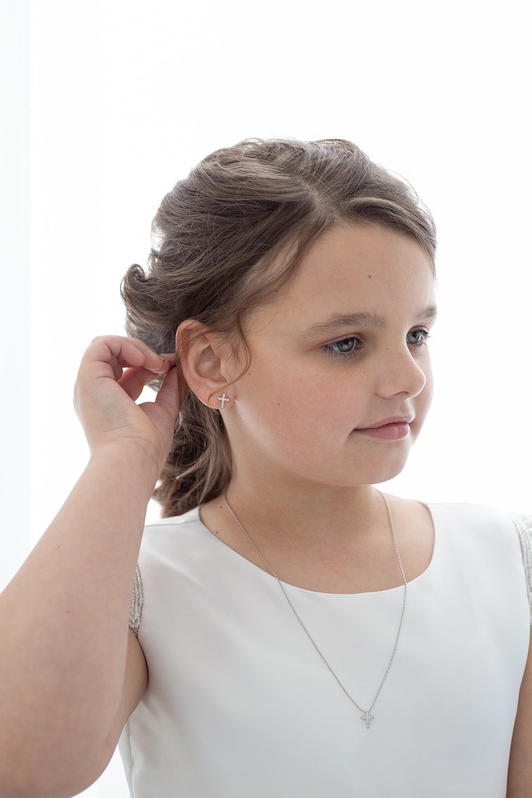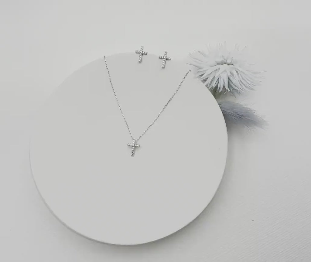 Delicate and timeless, this petite cross jewelry set is designed for meaningful moments — whether gifted for a First Communion or worn as a minimalist everyday piece.