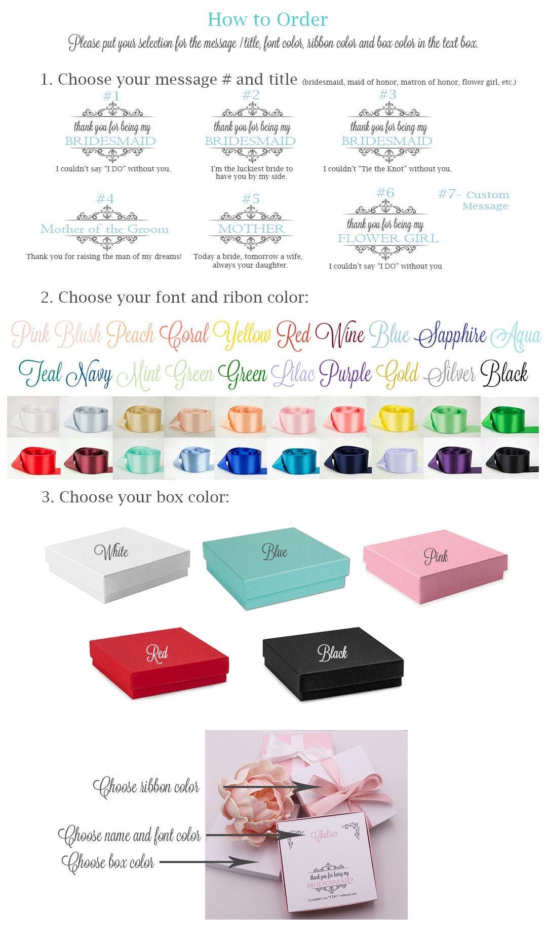 This classically designed bridesmaid earrings, necklace and bracelet set boasts brilliant rhinestone clusters in bright silver plating metal with alternating off white glass pearls. Perfect for the wedding, bridesmaids or any special occasion! Available in silver, yellow gold and rose gold! Earrings measure 1", necklace is adjustable and measures from 16-18" long. Bracelet (optional) measures 7". Each set comes on a custom, personalized jewelry card featuring your choice for the name, title, font color and box color. Please enter card and box information in the order details text field.