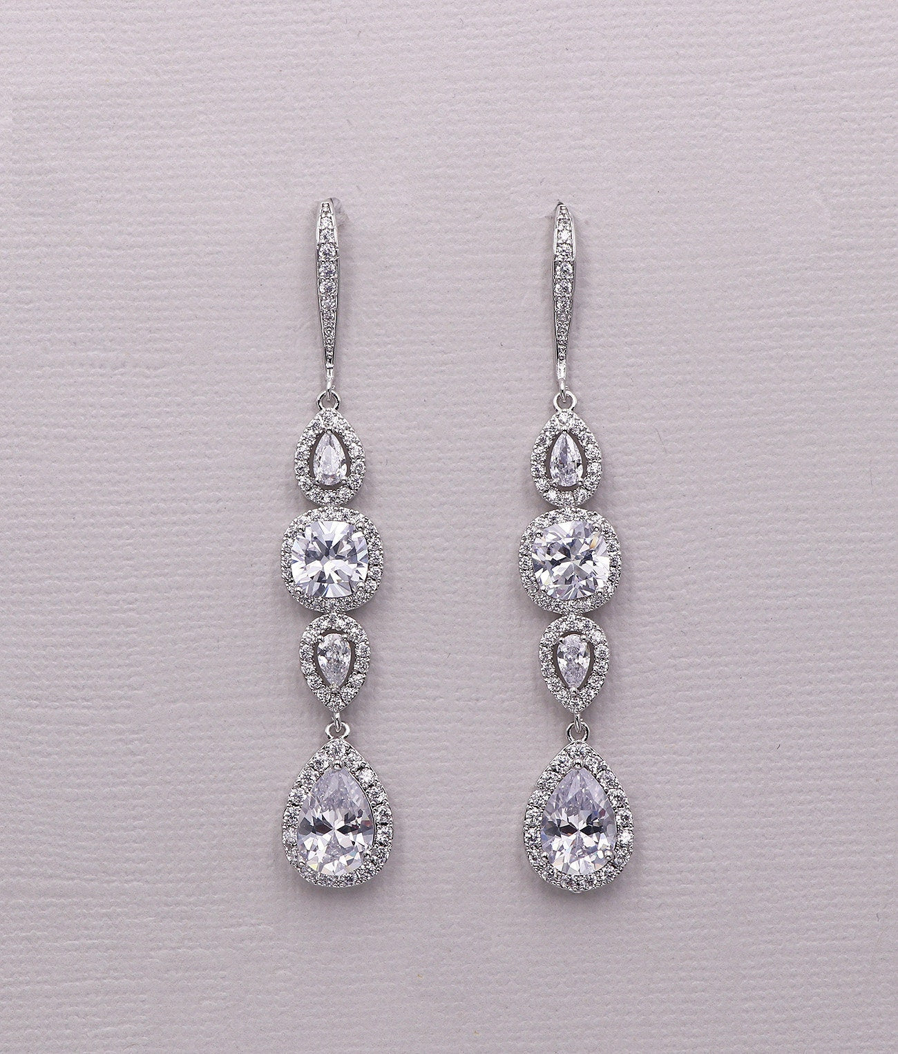 This elegantly designed jewelry set will surely add sparkle on your special day! Boasting brilliant inverted pear stones dangling from CZ encrusted French hook earrings. Necklace measures 16"-18" long, earrings measure 2 1/2" long. This set is perfect for the bride, bridesmaids, prom or any special occasion! Choose from silver or rose gold finish.