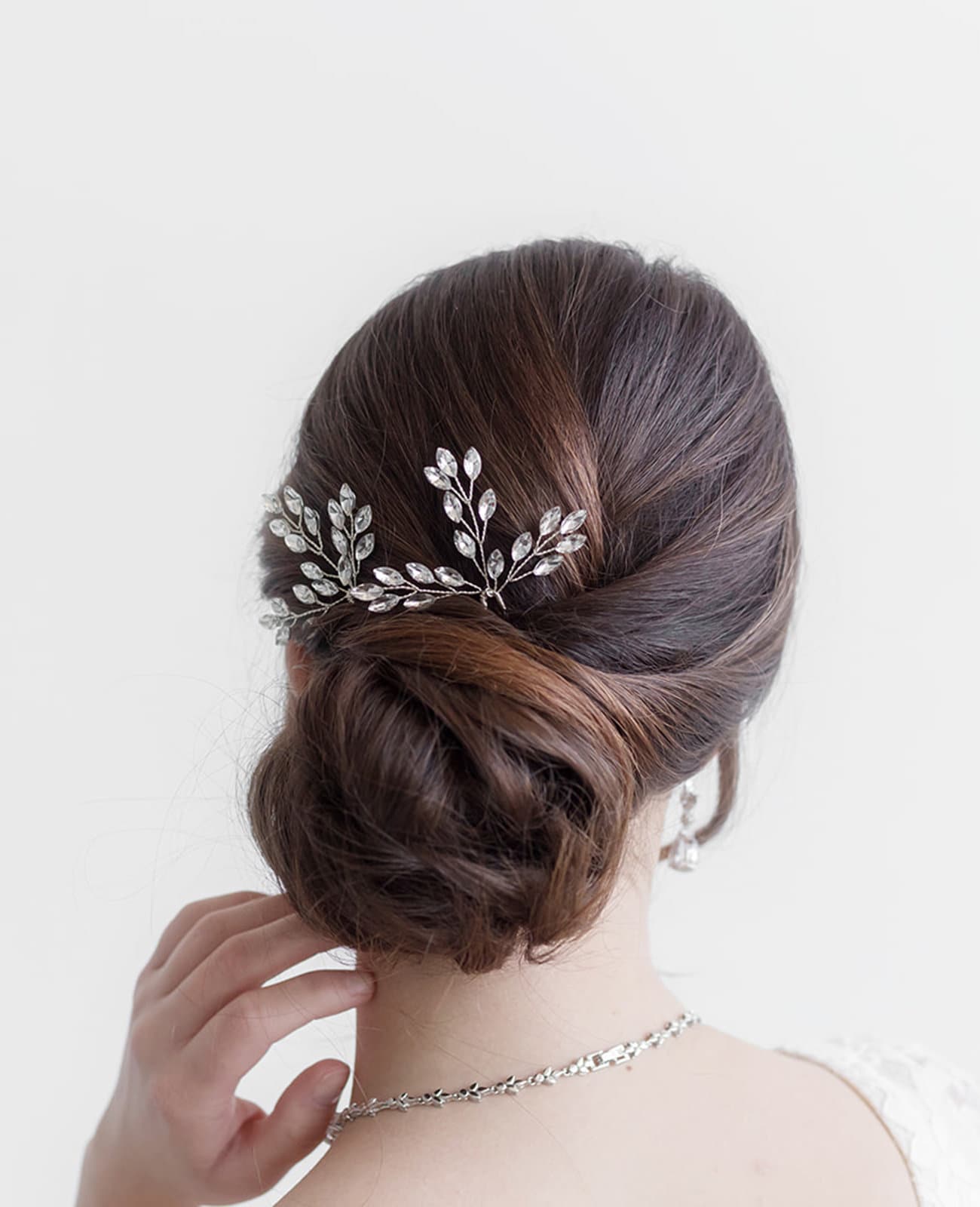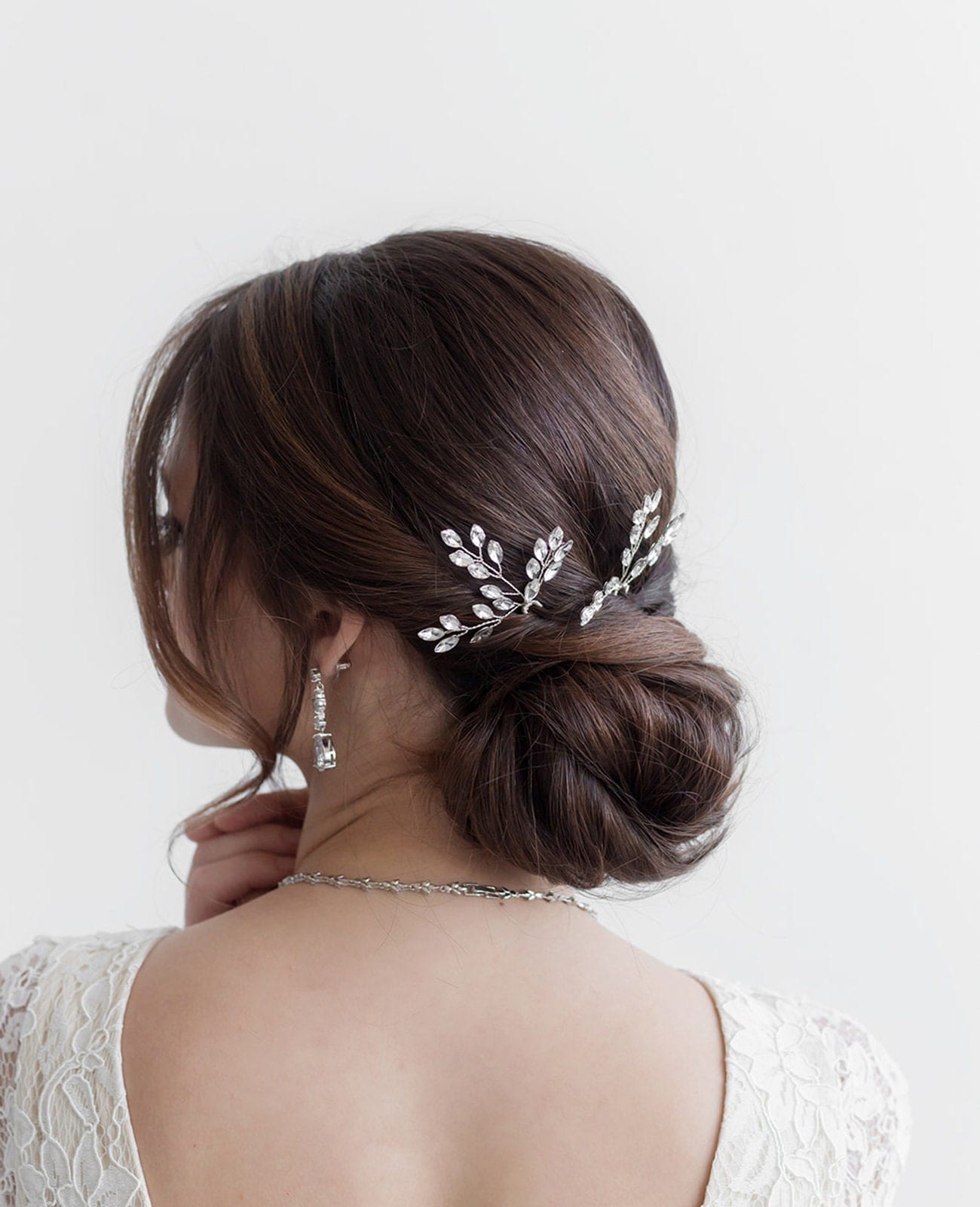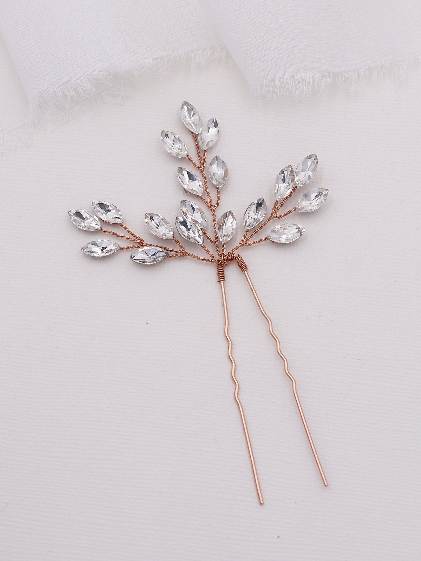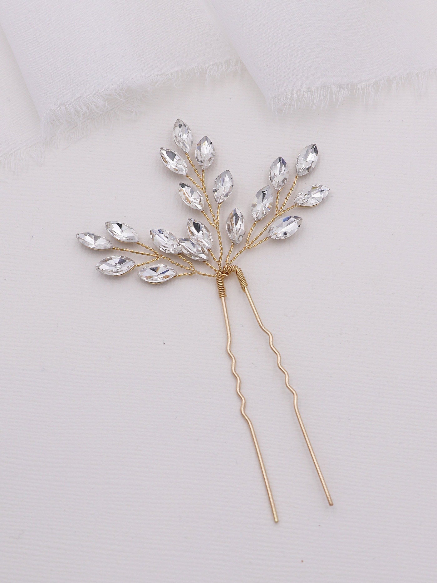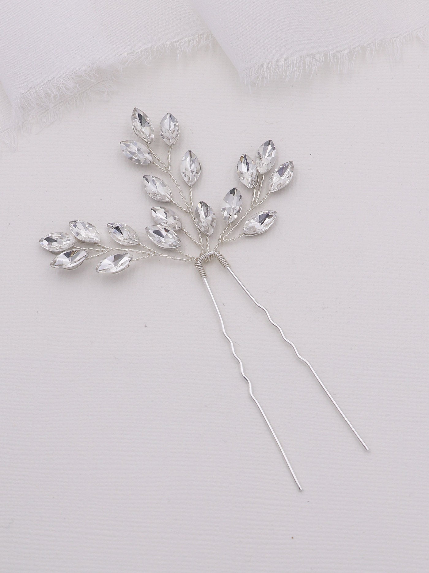 This sparkling wedding hair pin is sure to add beauty to your special day! Features brilliant marquise rhinestones, measuring 2" tall. Wear one, or cluster a few to add brilliance to your hair! Perfect for weddings, the bride, bridesmaids, or any special occasion! Now available in silver, gold or rose gold!