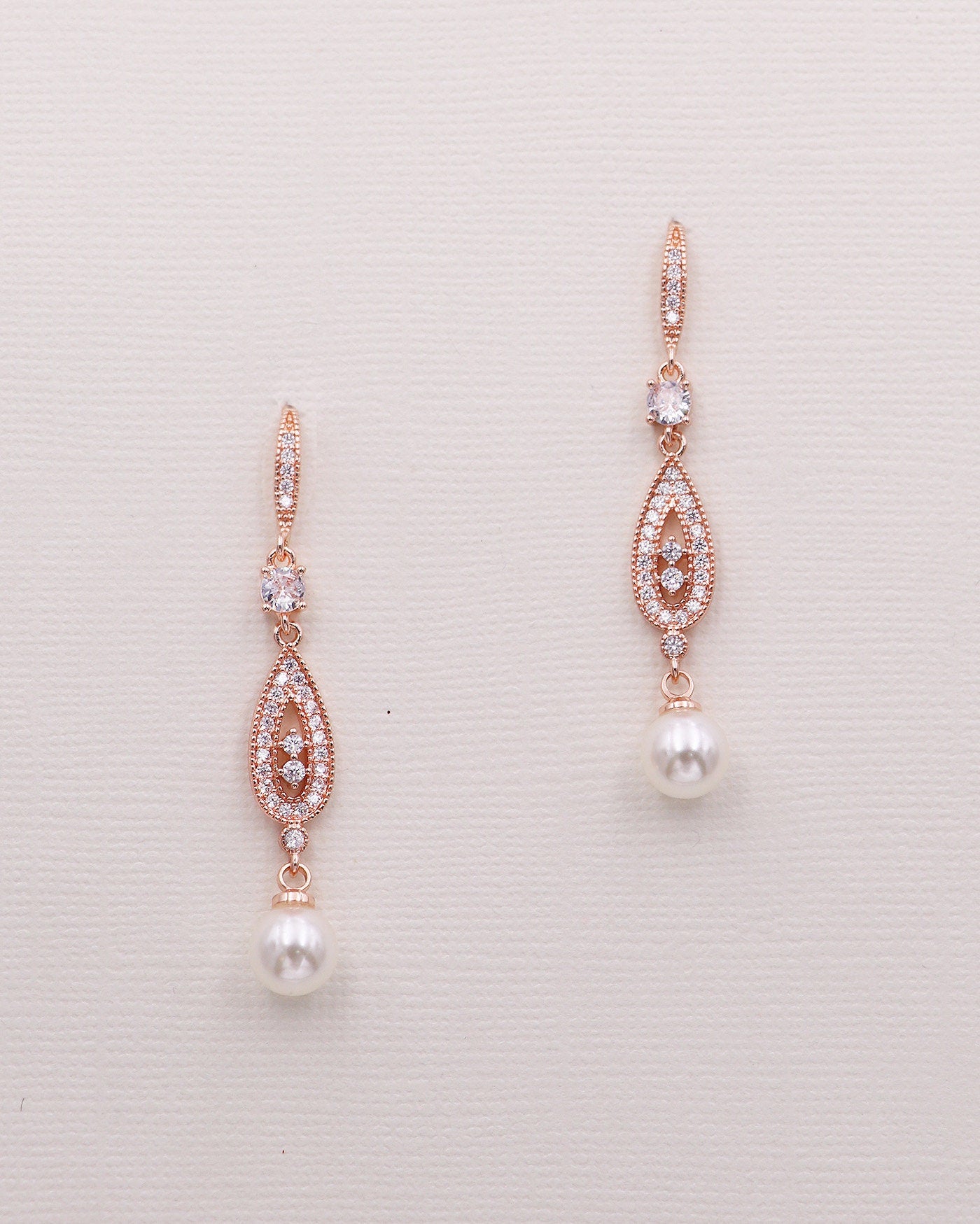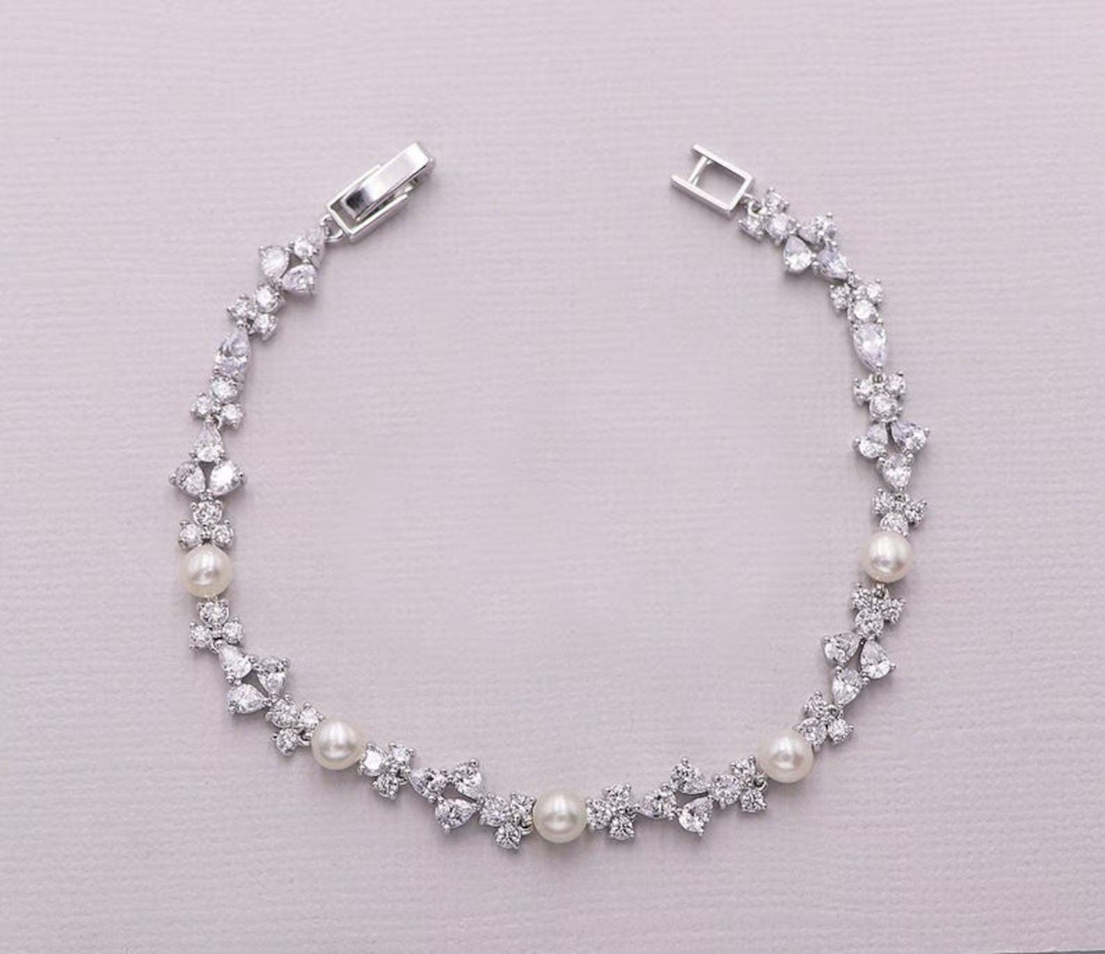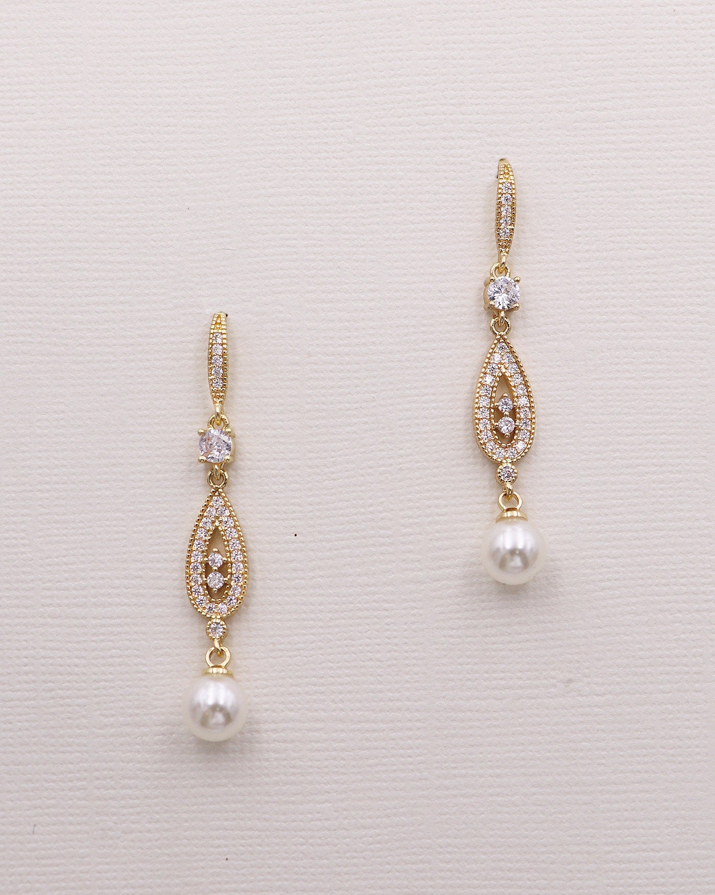 • High quality cubic zirconia, off white glass pearls and gold plating.
