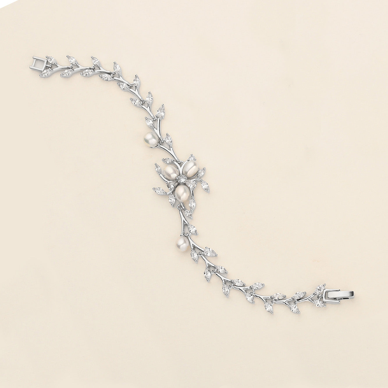 This exquisitely crafted bracelet boasts freshwater pearl clusters accented with AAA grade cubic zirconia stones. Bracelet measures 7" and is perfect for the bride or any special occasion! Choose from silver, gold or rose gold.