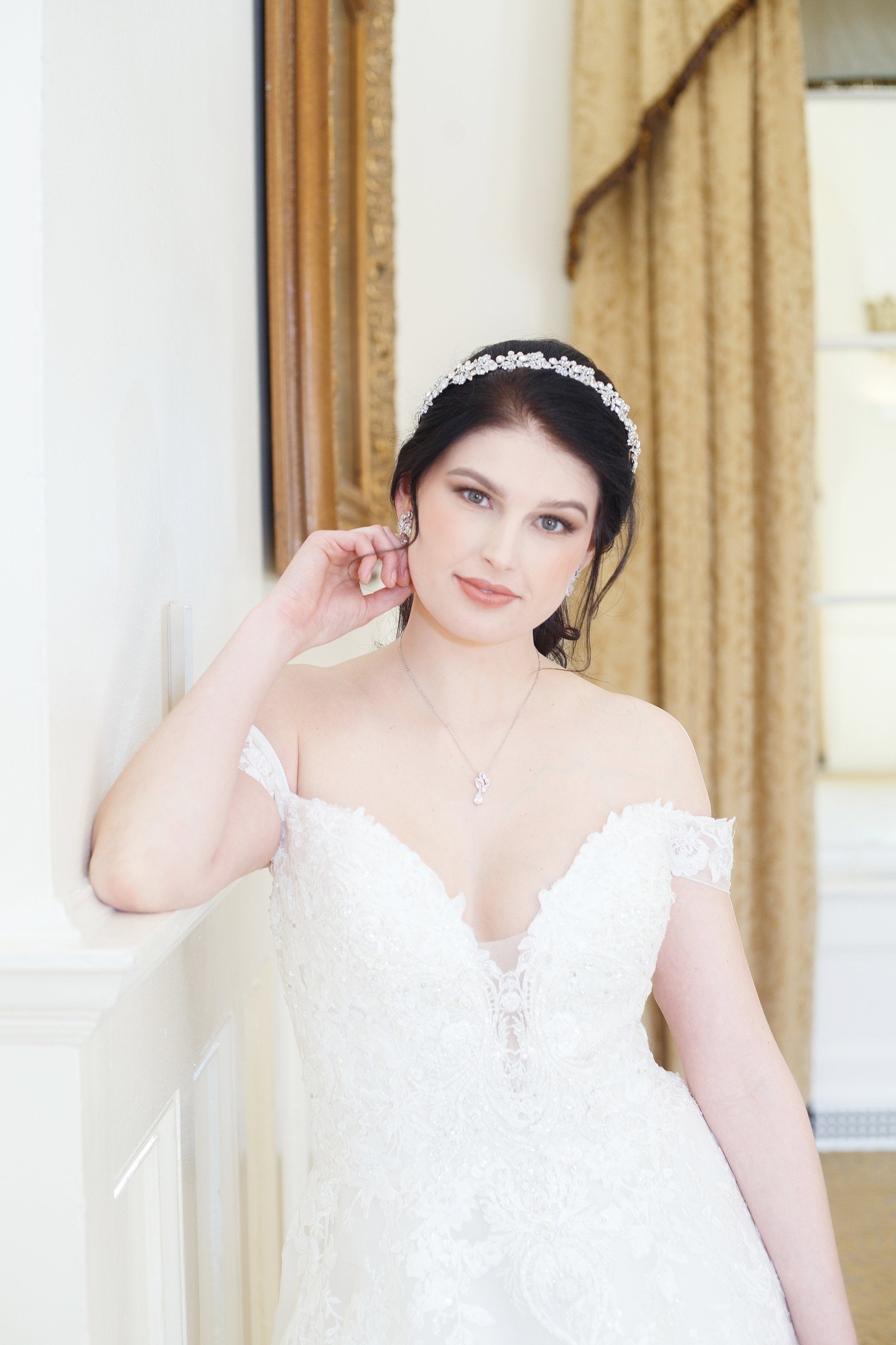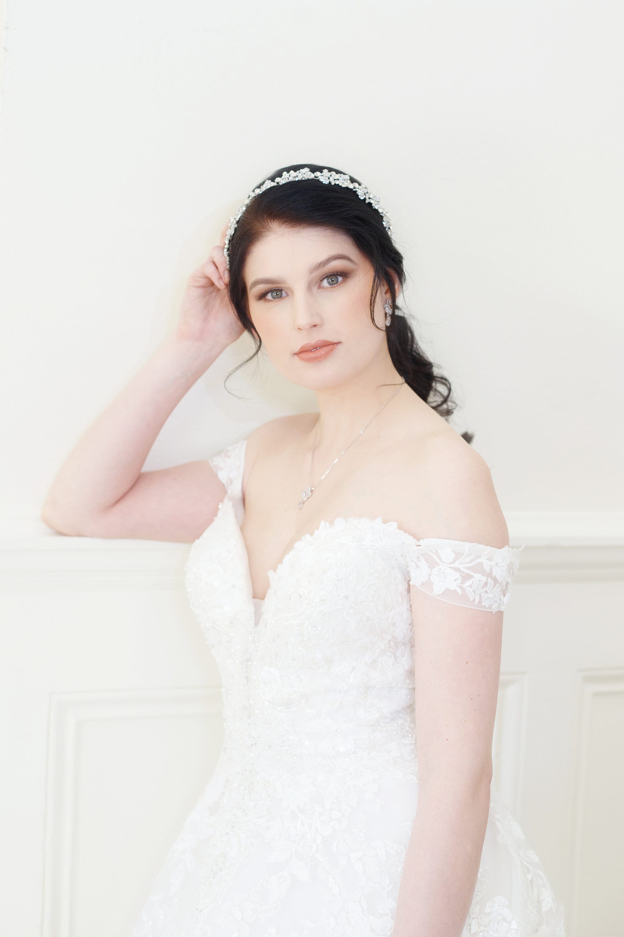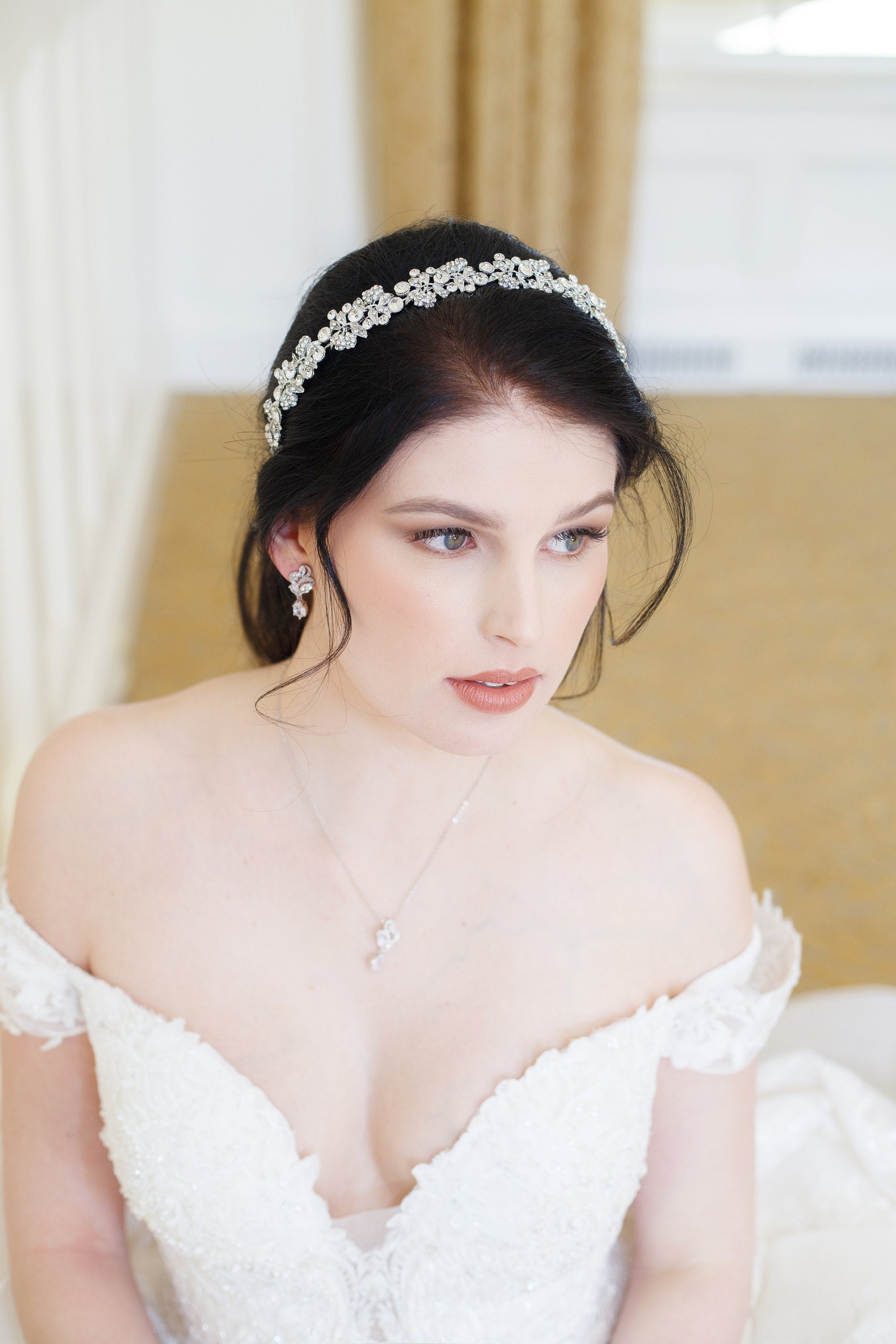 Add brilliance to your special day with this sparkling wedding headband featuring clusters of round rhinestone crystals. Measures 1" wide. This headband can be worn with or without attached ribbon. Makes a beautiful bridal headpiece for weddings!