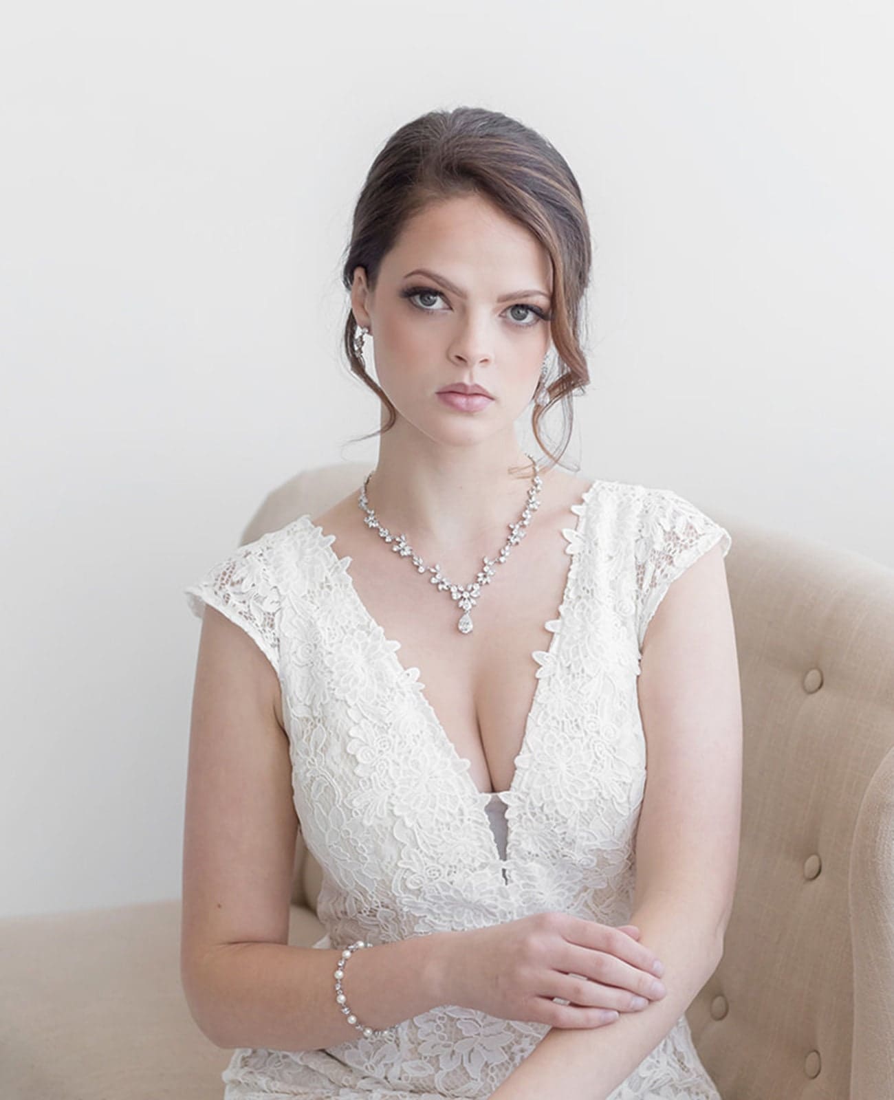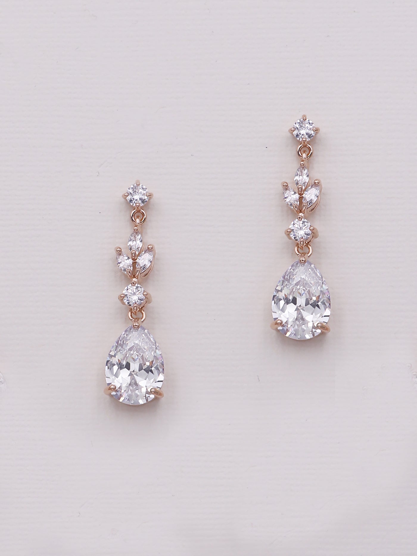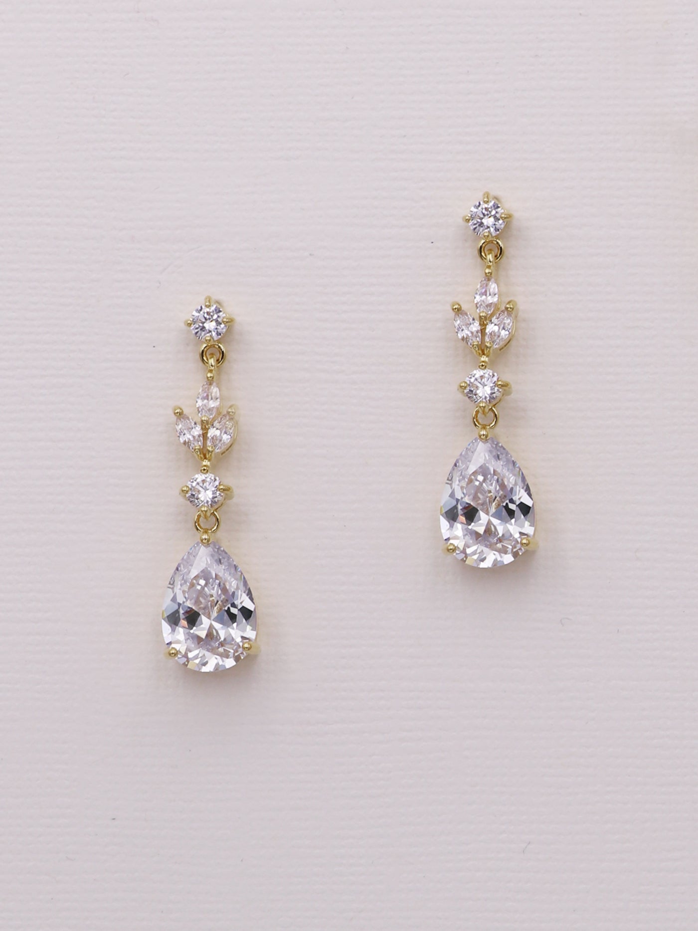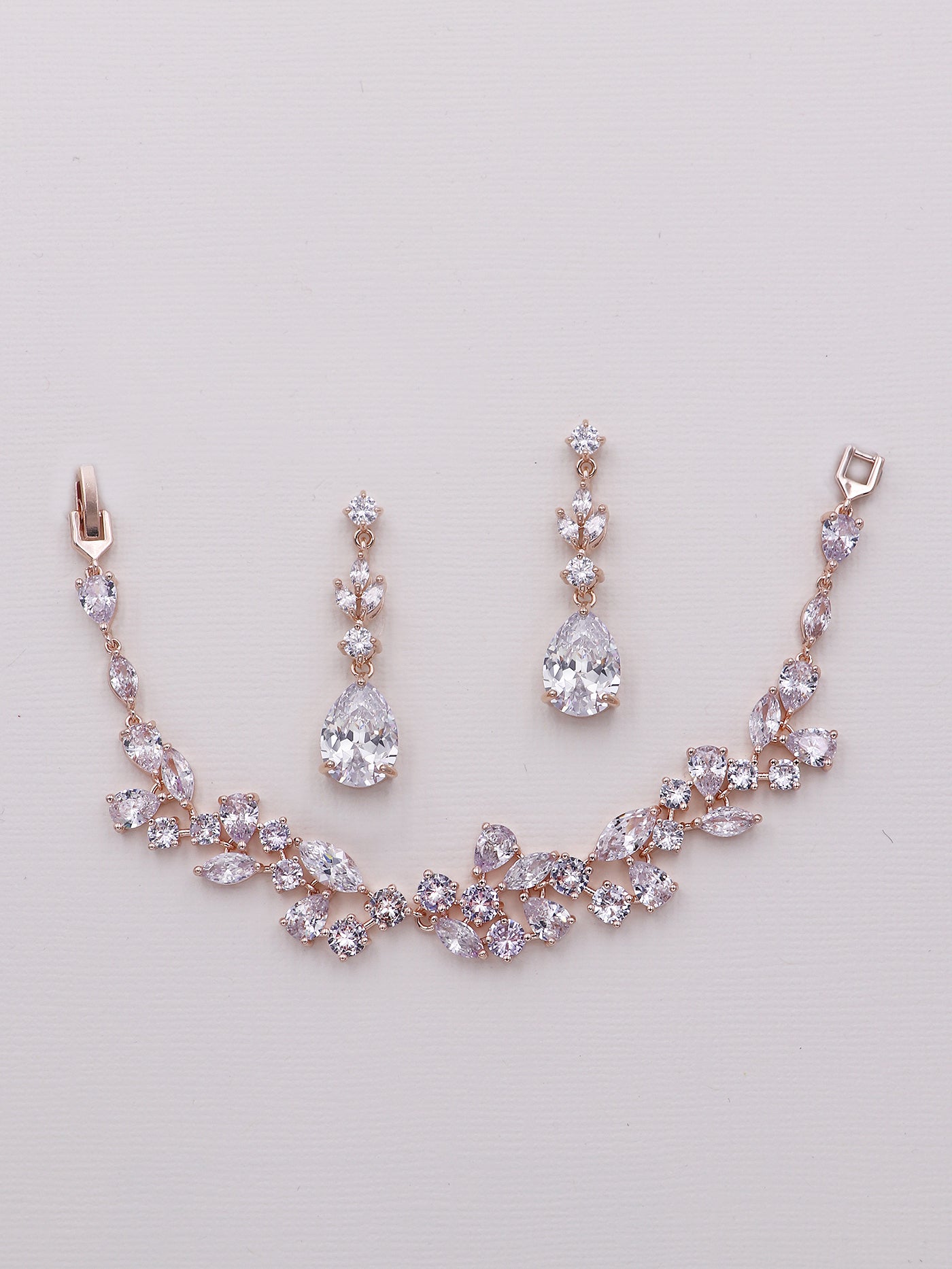 These brilliant earrings will surely add sparkle on your special day! Boasting brilliant cubic zirconia in clusters of marquise shapes and teardrops set in shiny silver. Earrings measure 1 3/4". Matching optional bracelet available measuring 7". Available in silver, gold or rose gold!