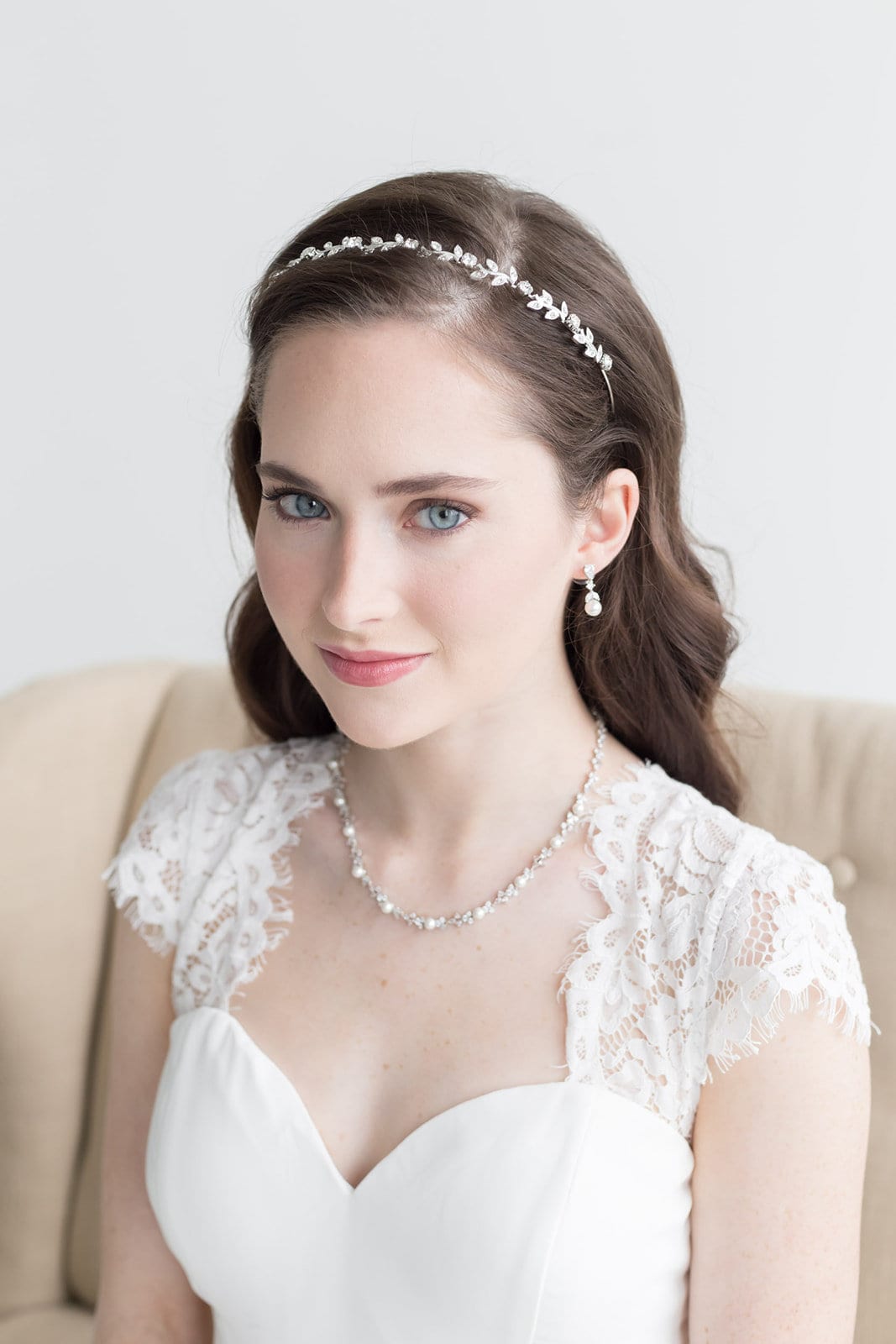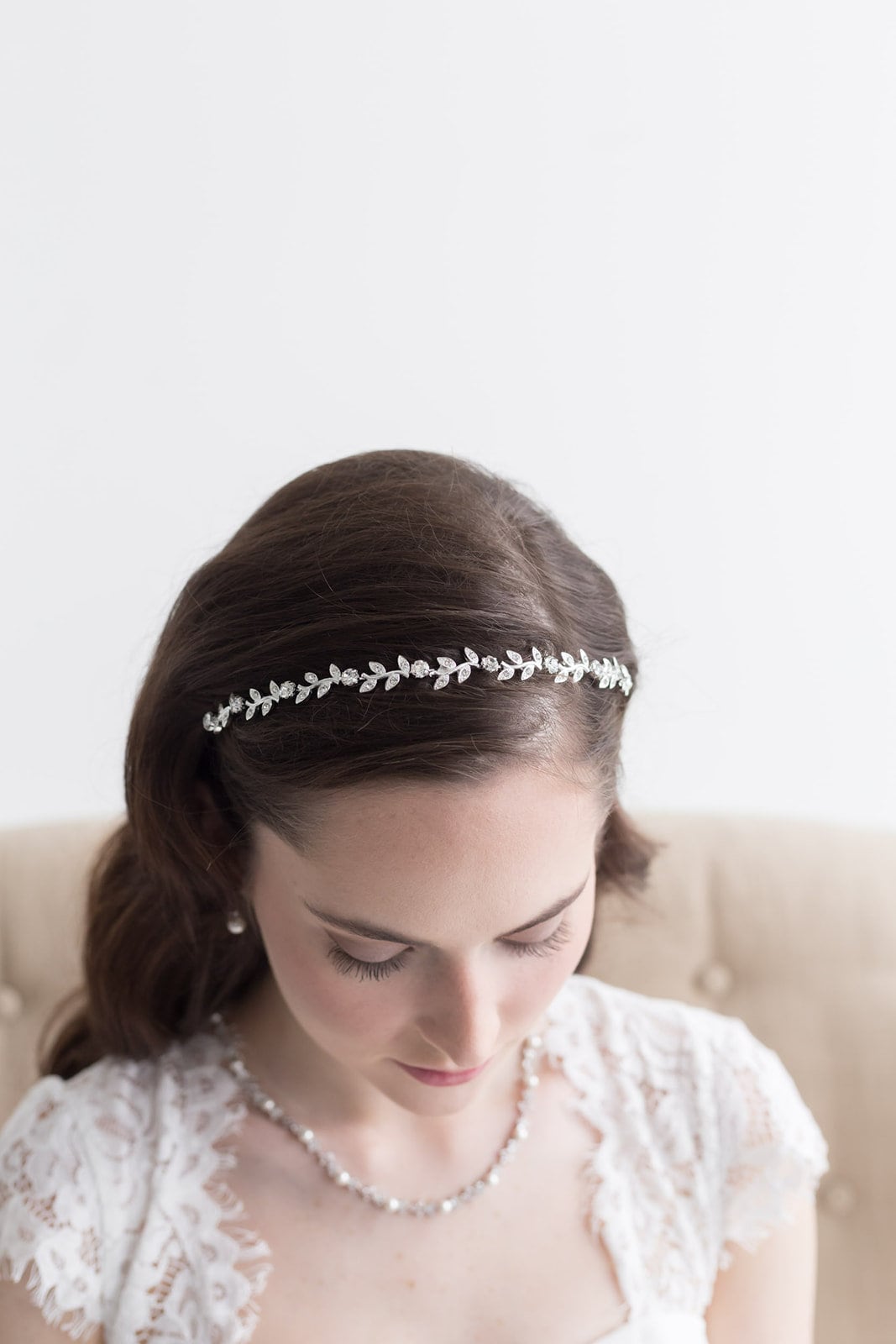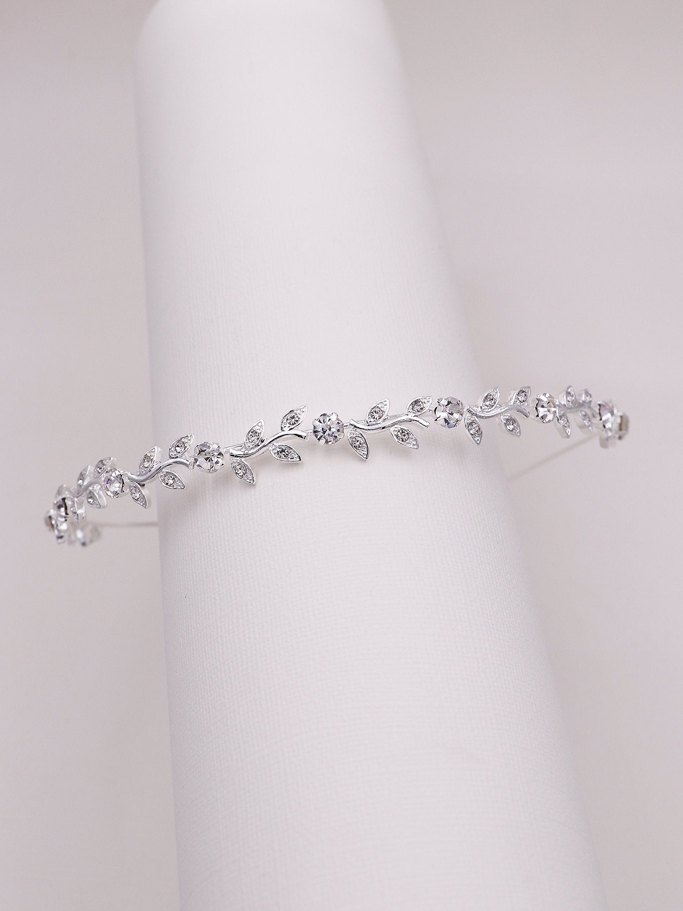 Add brilliance to your special day with this sparkling wedding headband featuring high quality rhinestones in a vine-like design. Choose from clear or sapphire. Measures 1/4" wide. This headband is perfect for the bride, bridesmaids, prom, or any special occasion!