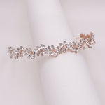 This brilliant headband is made with sparkling rhinestones in a leaf, wavy vine-like pattern that boasts a look of sophistication and symmetry. Measuring 1" wide, this sparkling headpiece is sure to add beauty and elegance to your special day! Choose from silver, gold or rose gold. This headband is perfect for weddings, bridesmaids, prom, and parties!