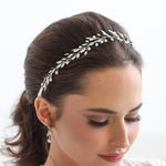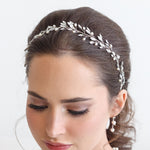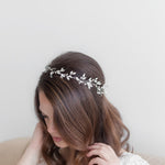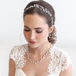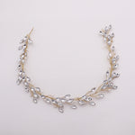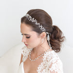 This brilliant wedding headpiece boasts shining rhinestone crystal accented with freshwater pearls. Measuring 1" wide and 14" long, this sparkling and versatile headpiece is sure to add beauty to your special day! This gorgeous headpiece can be ordered with or without ribbon, so it can be worn as a hair vine or as a ribbon headband. This is a flexible headpiece, so the branches can be moved to your liking. If ordering with ribbon, please specify the color in the notes section during checkout. Ribbon colors include white or ivory. This headband is perfect for weddings, bridesmaids, prom, and parties! Now available in silver, gold or rose gold!