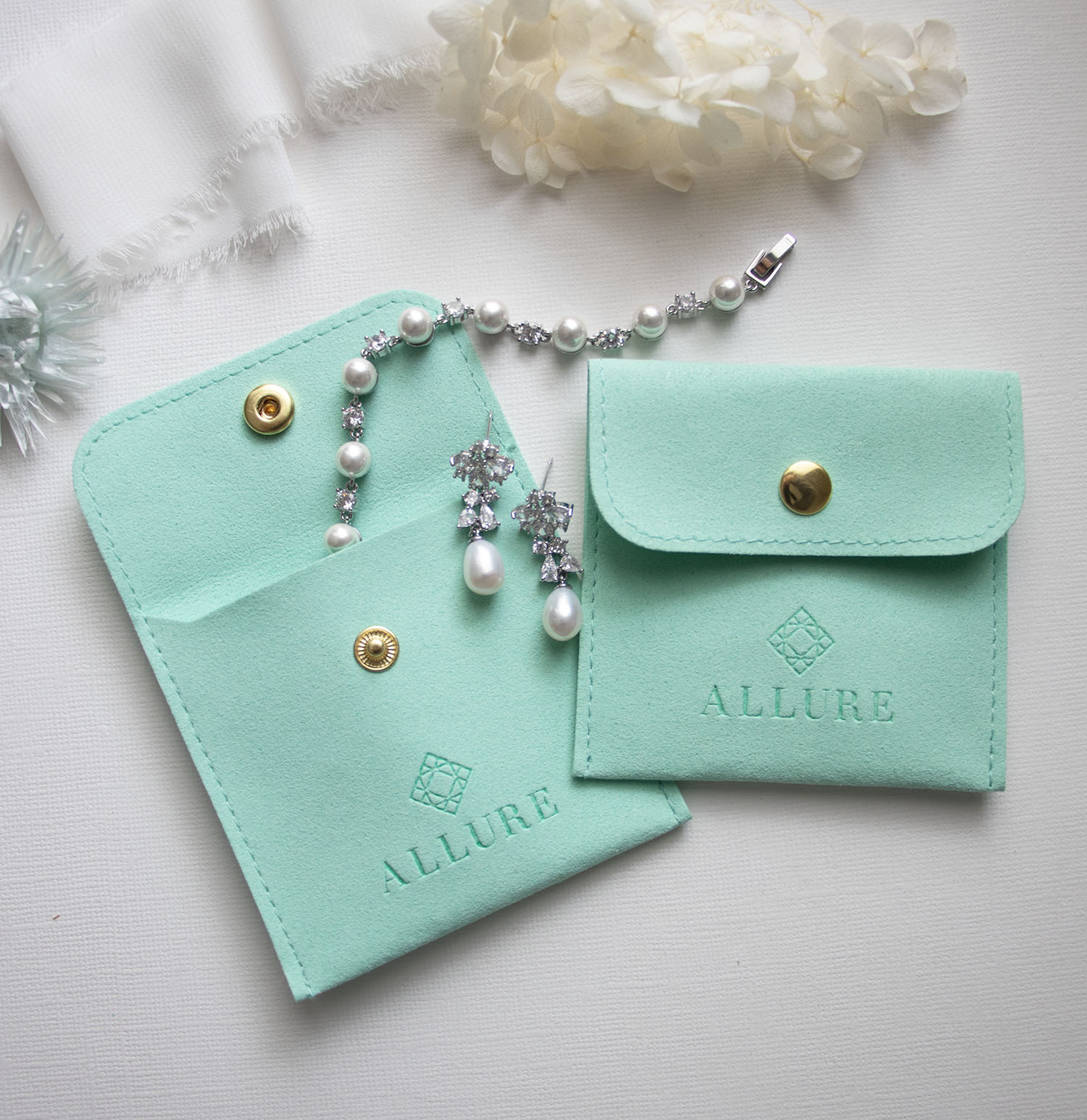 Crafted in our iconic blue color and embossed with the Allure logo, this soft pouch keeps your jewelry safe while creating a beautiful presentation for bridesmaids, brides, or special occasions.