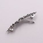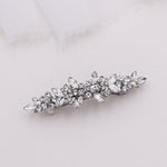 This brilliant barrette features sparkling rhinestones in a cluster pattern of round and marquise stones that is the perfect accessory for the bride or any special occasion event. This piece is perfect as a side or back clip accessory. Measures a more petite size at 3" wide and 1/2" tall and has a clip on the back to securely place into your hair. Now available in gold and rose gold!
