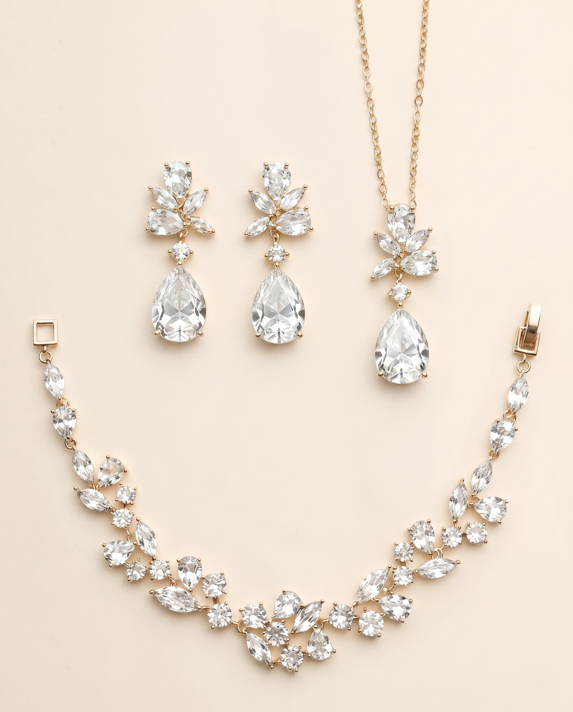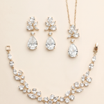 Natalia Gold Jewelry Set – Floral CZ Bridal Necklace, Earrings & Bracelet Set
